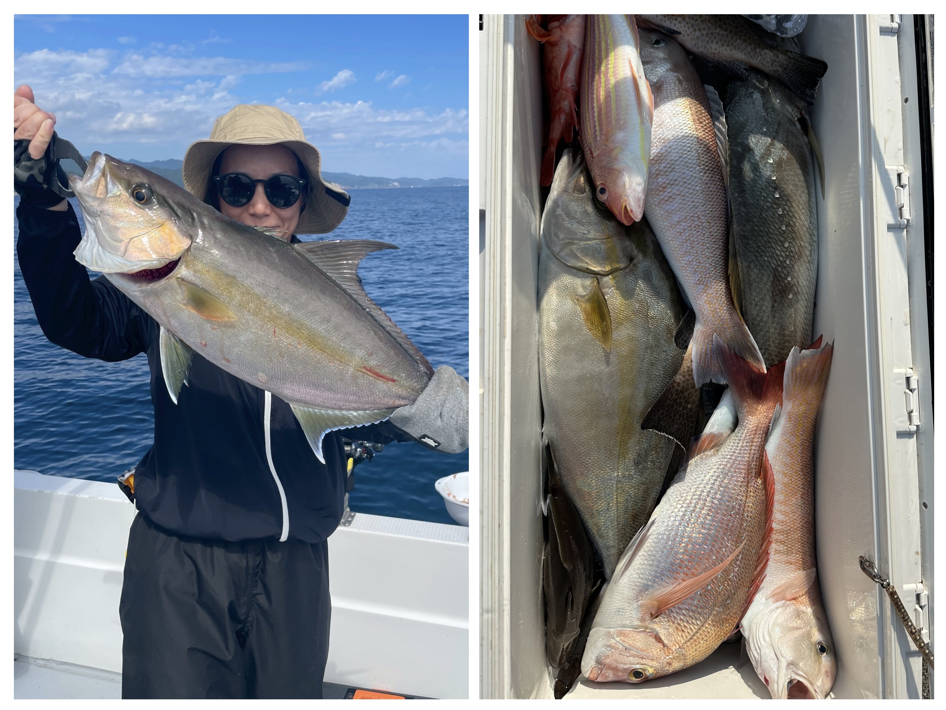 ナイスサイズなヒレナガカンパチ、白甘鯛、真鯛、ニベ、サバ、オオモンハタ等色んな魚種を釣られてました🎶