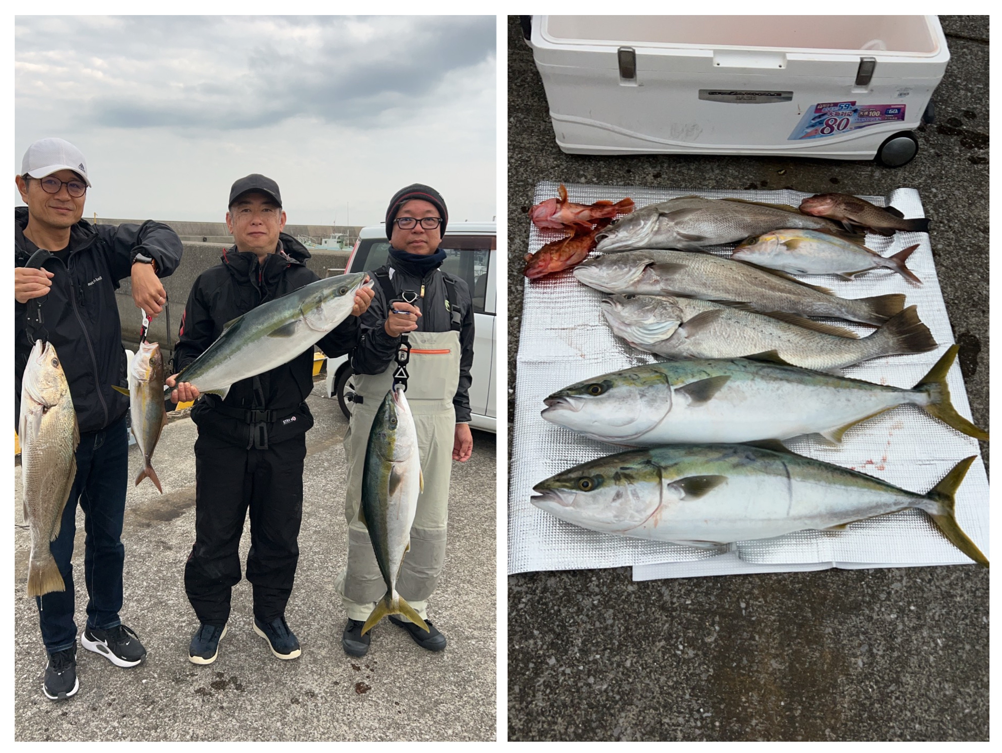 お昼位には風も落ち着き釣りやすくなったみたいで、何ヶ所かポイントをまわられてブリ、ニベ、ネリゴ等GETされてましたよ🎶