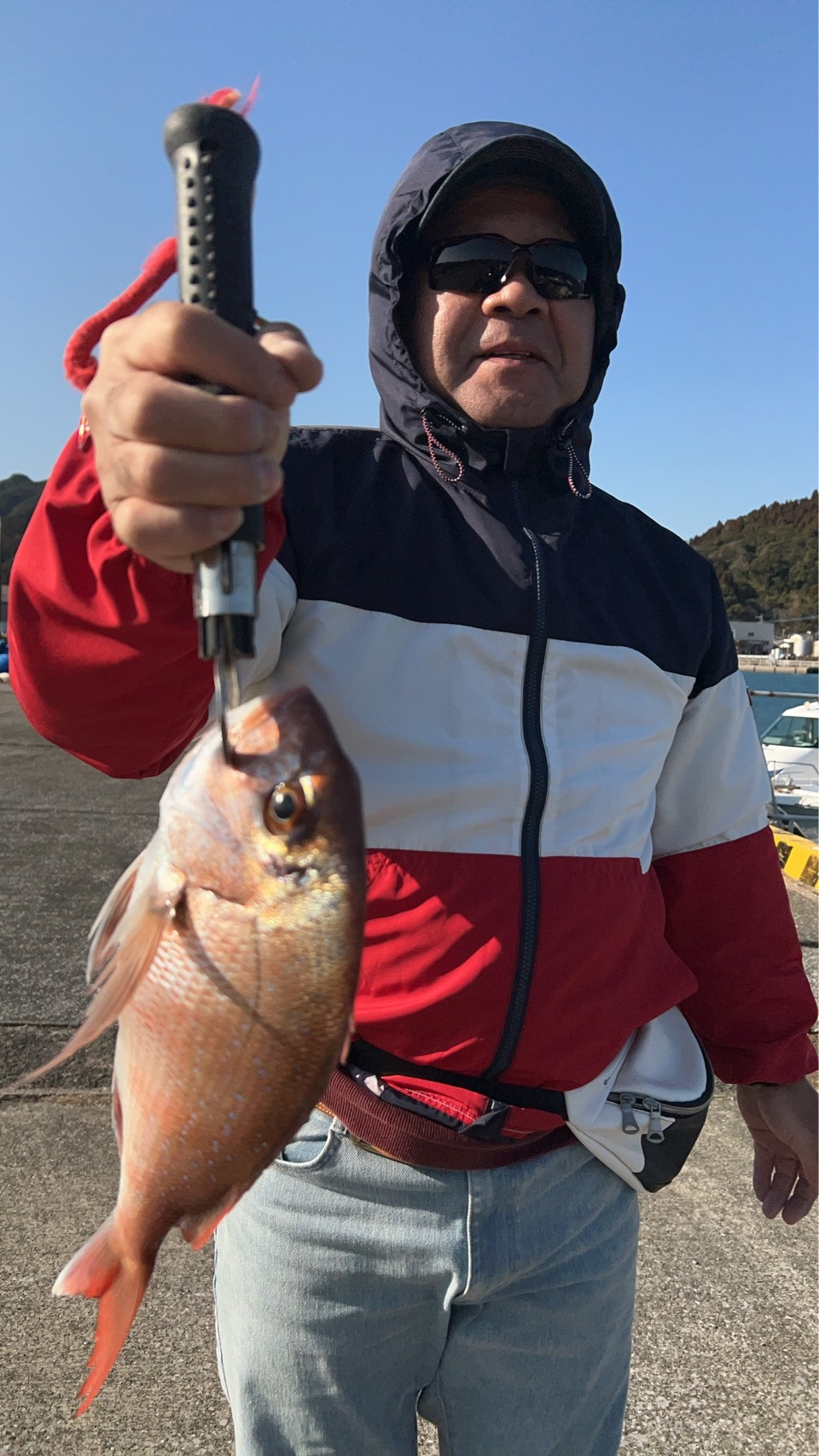 午前中は釣果が無かったみたいですが、操船に慣れて来て午後から広く流せるポイントに移動してから真鯛、チダイ、オオモンハタ等釣られてました🎶
